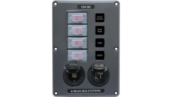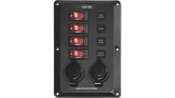 Panel Wyłączników Blue Sea BelowDeck – 4 obwody + 2 gniazda 12V