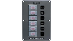 Panel Wodoodporny Blue Sea 12V DC z wyłącznikami automatycznymi, 6 pozycji