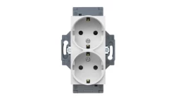 Gniazdo Schuko 2P+E 16A podwójne, z przesłoną styków, z uziemieniem, zaciski śrubowe, biały, Dahlia GW35204W