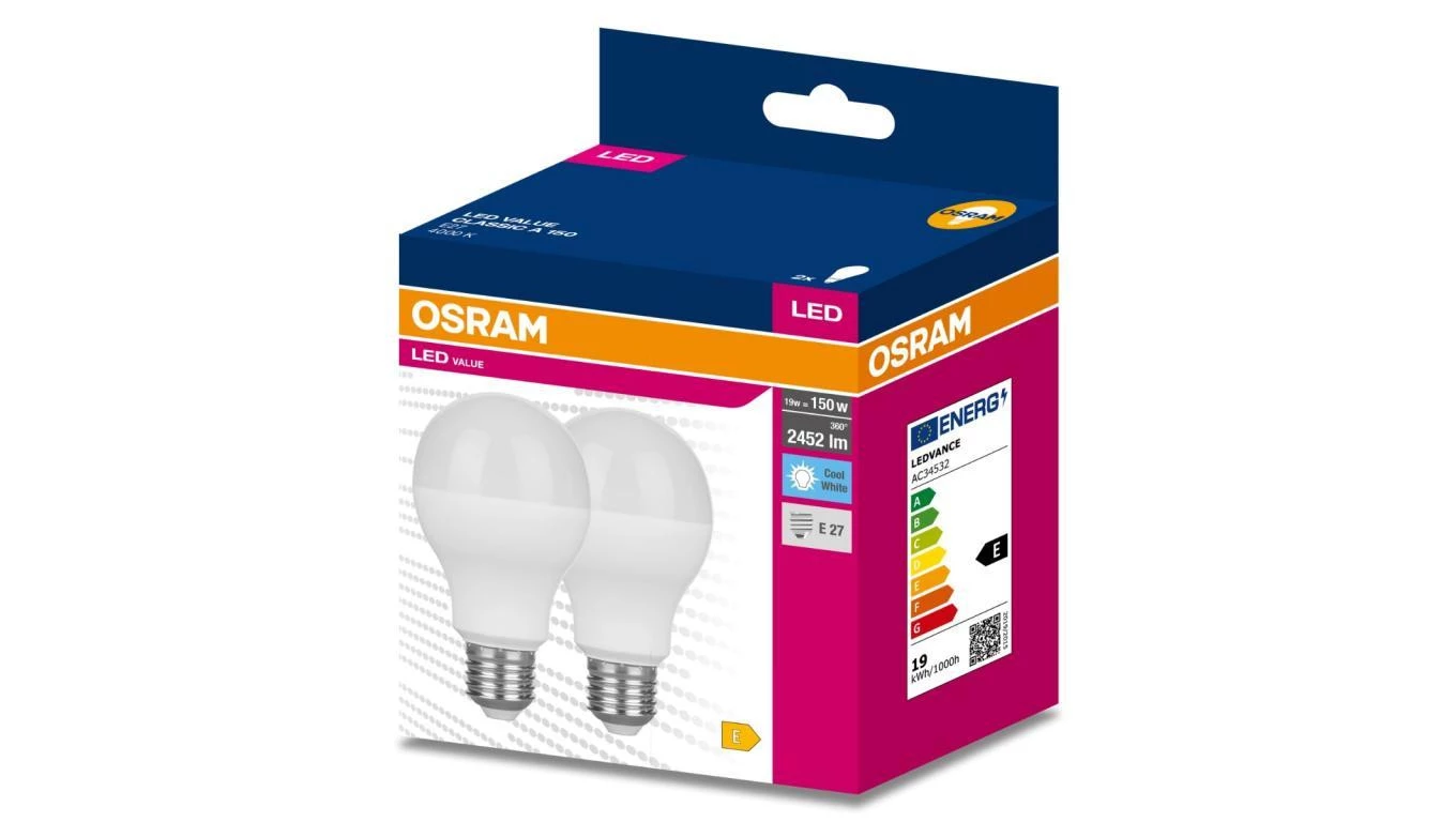 2PAK Żarówka LED E27 A60 19W = 150W 2452lm 4000K Neutralna 200 OSRAM VALUE