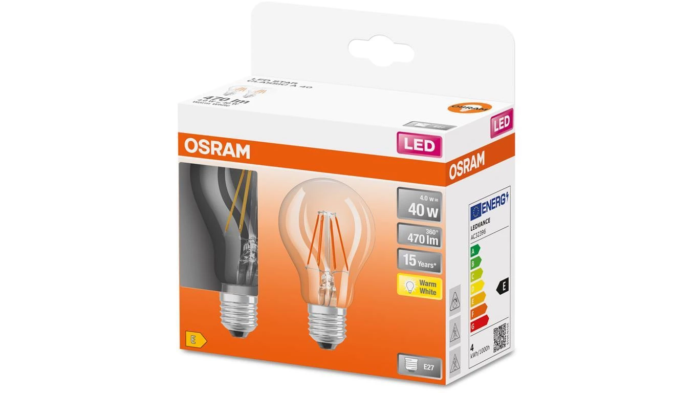 2Pak Żarówka LED E27 A60 4W = 40W 470lm 2700K 300 Filament OSRAM STAR