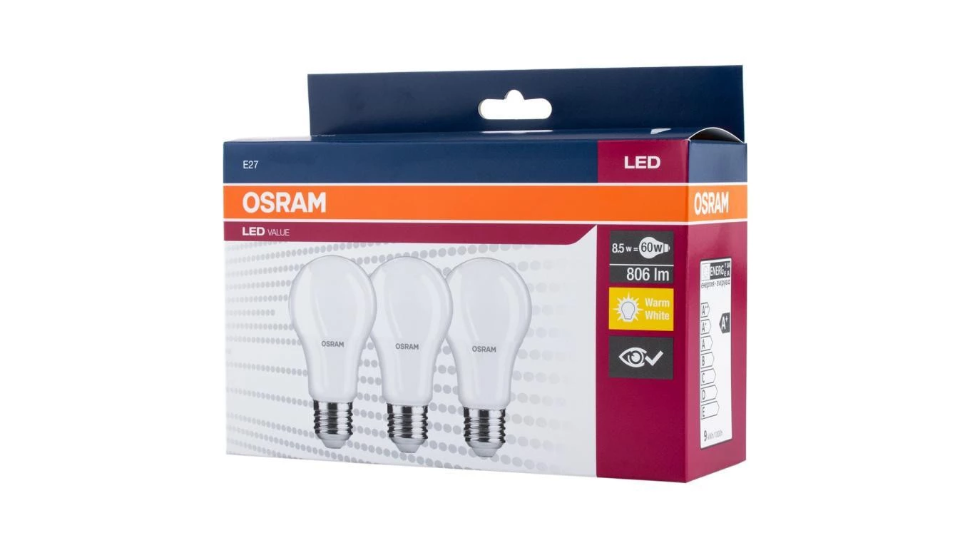 3PAK Żarówka LED A60 E27 8,5W = 60W 806lm 2700K Ciepła OSRAM Value