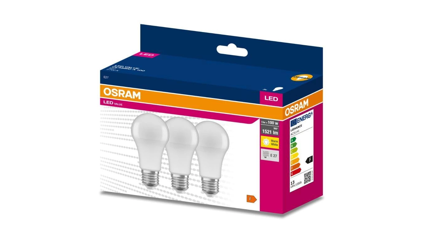 3PAK Żarówka LED E27 A60 13W = 100W 1521lm 2700K Ciepła OSRAM Value