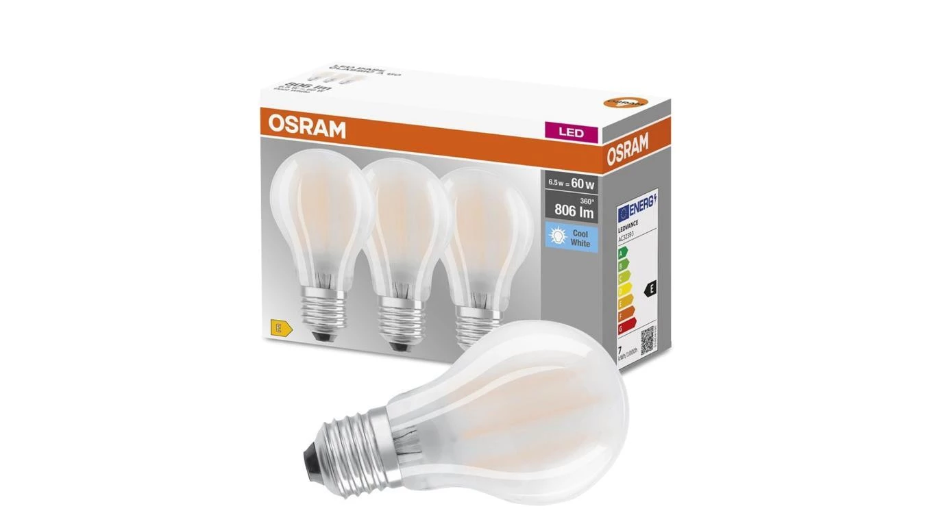 3PAK Żarówka LED E27 A60 6,5W = 60W 806lm 4000K Neutralna 300 Filament OSRAM BASE