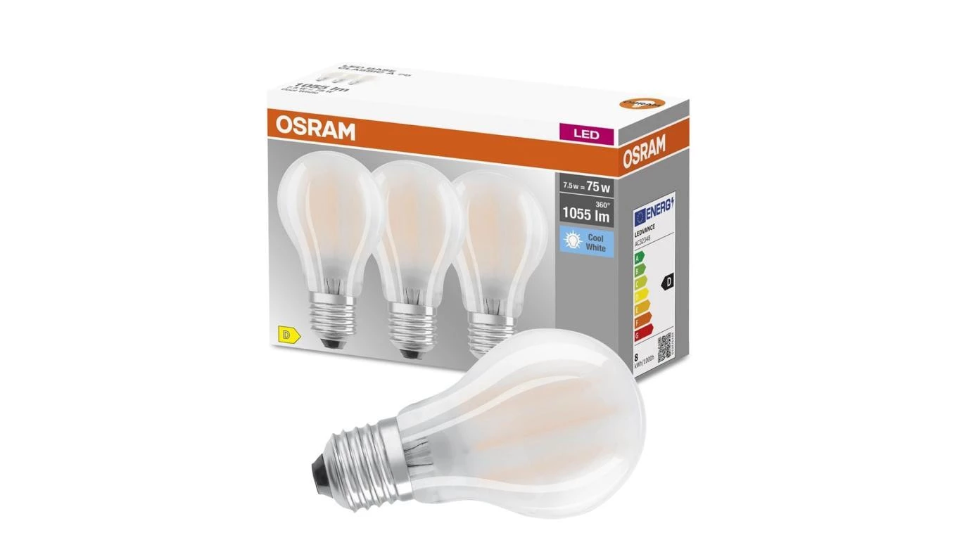 3PAK Żarówka LED E27 A60 7,5W = 75W 1055lm 4000K Neutralna 300 Filament OSRAM BASE