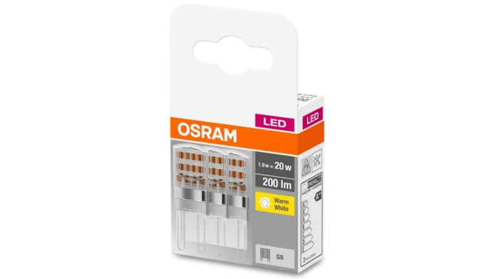 3PAK Żarówka LED G9 KAPSUŁKA 1,9W = 20W 200lm 2700K Ciepła OSRAM Base