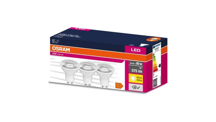 3PAK Żarówka LED GU10 6,9W = 80W 575lm 2700K Ciepła 60 OSRAM VALUE