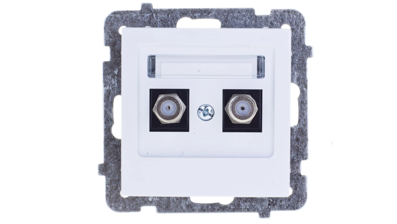 AS Gniazdo antenowe podwójne typu F białe GPA-2GF/m/00