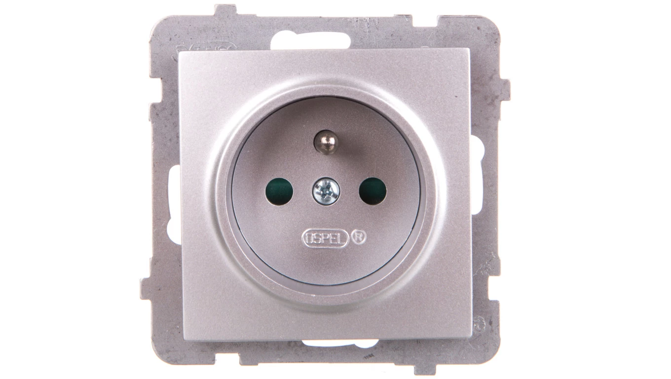 AS Gniazdo pojedyncze z/u z przesłonami srebro GP-1GZP/m/18