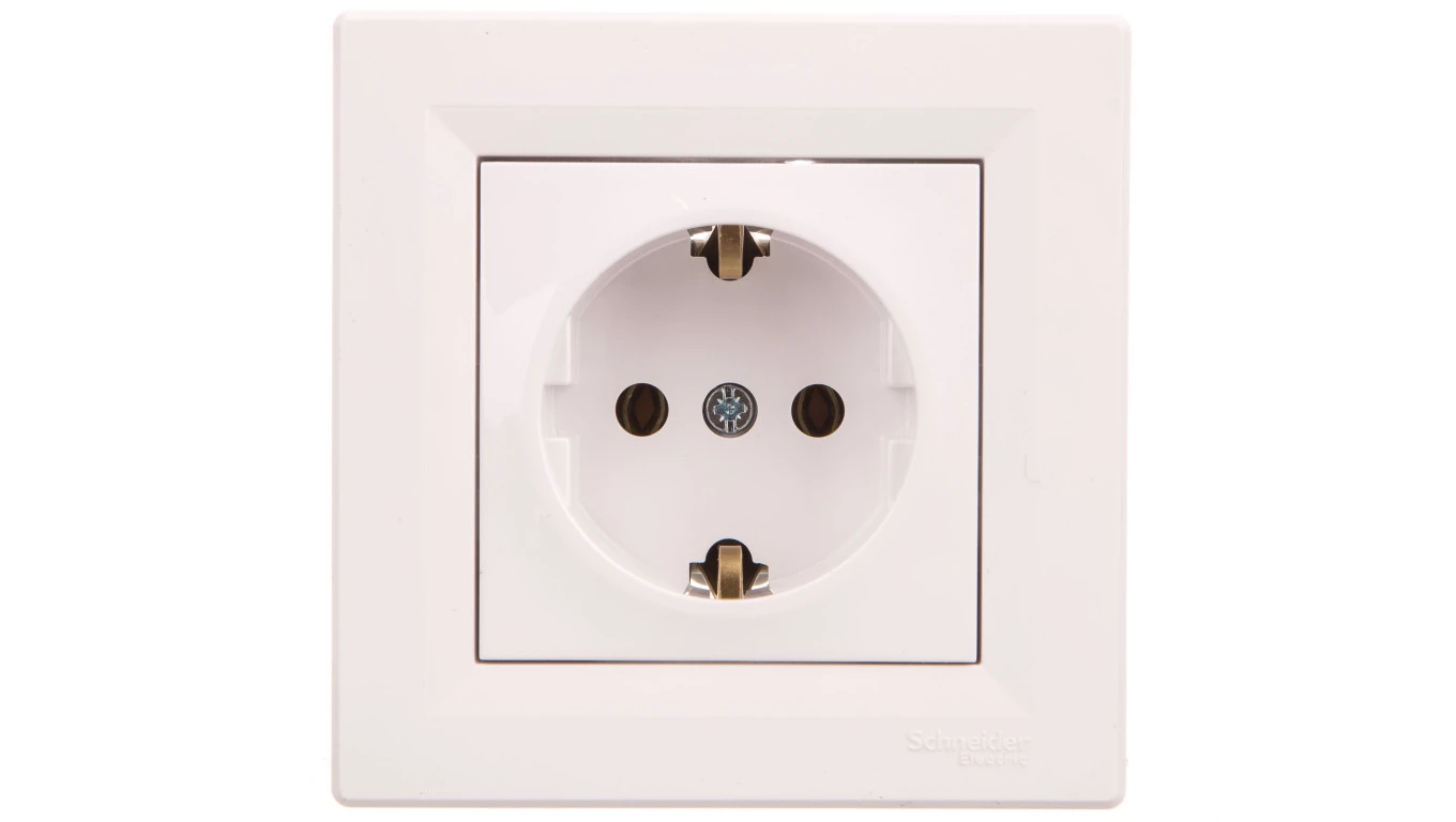 Simon 54 Gniazdo pojedyncze SCHUKO z/u 16A IP20 z przesłoną torów, szybkozłącza, białe DGSz1CZ.01/11