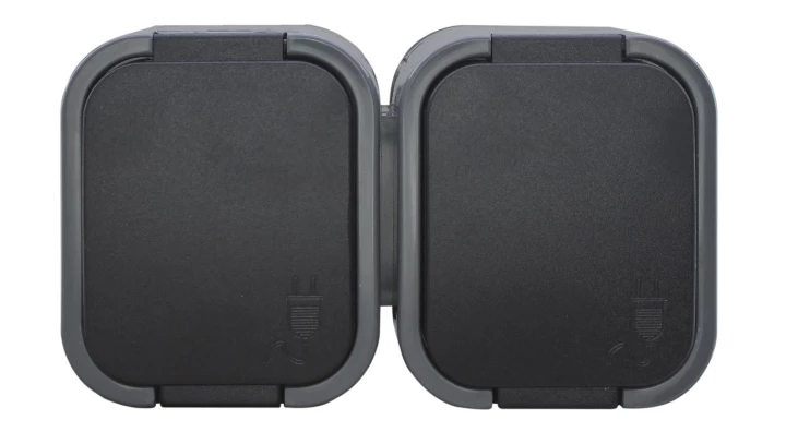 Hermes2 Gniazdo hermetyczne podwójne z/u 16A IP44 z klapką pełną biało-dymne 1022-01