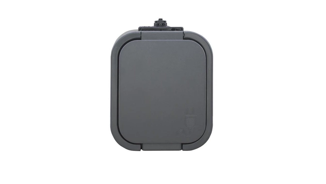 B2 Gniazdo pojedyncze 2P+Z SCHUKO bryzgoodporne z klapka w kolorze wyrobu IP54 szary 00060278