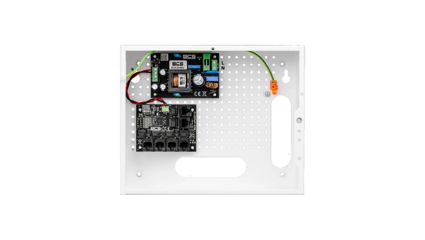 Obudowa BCS-E, Materiał obudowy - blacha stalowa 0,8 mm, Obudowa malowana proszkowo na kolor biały, Zamontowany tamper otwarcia, Dystans do ściany