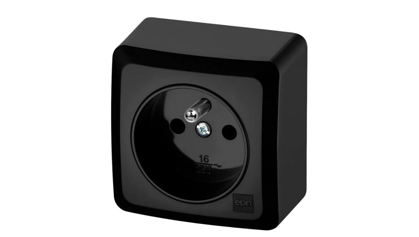 BERG Gniazdo pojedyncze z uziemieniem n/t 2P+Z czarny 3733-09