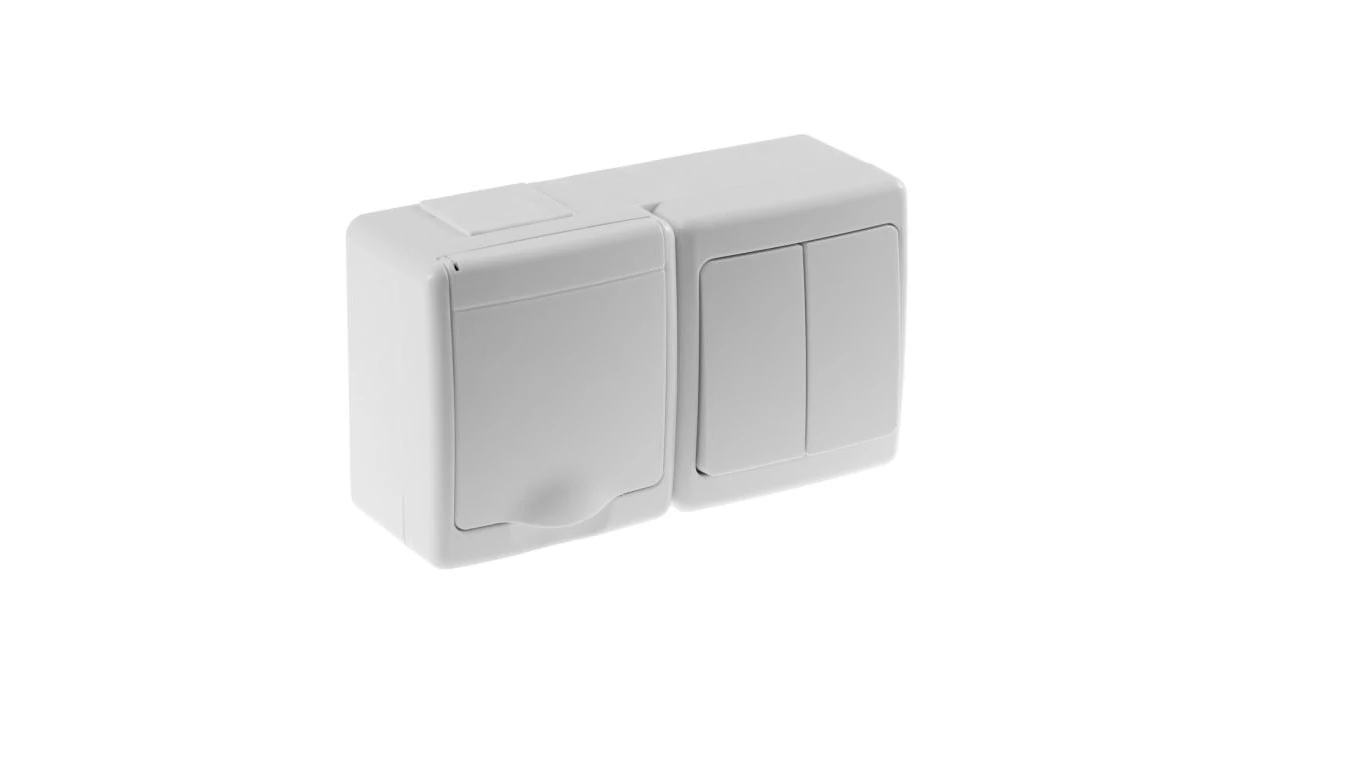 BETA Gniazdo hermetyczne podwójne, białe, dymna klapka, IP44 /D.3112GG/1/