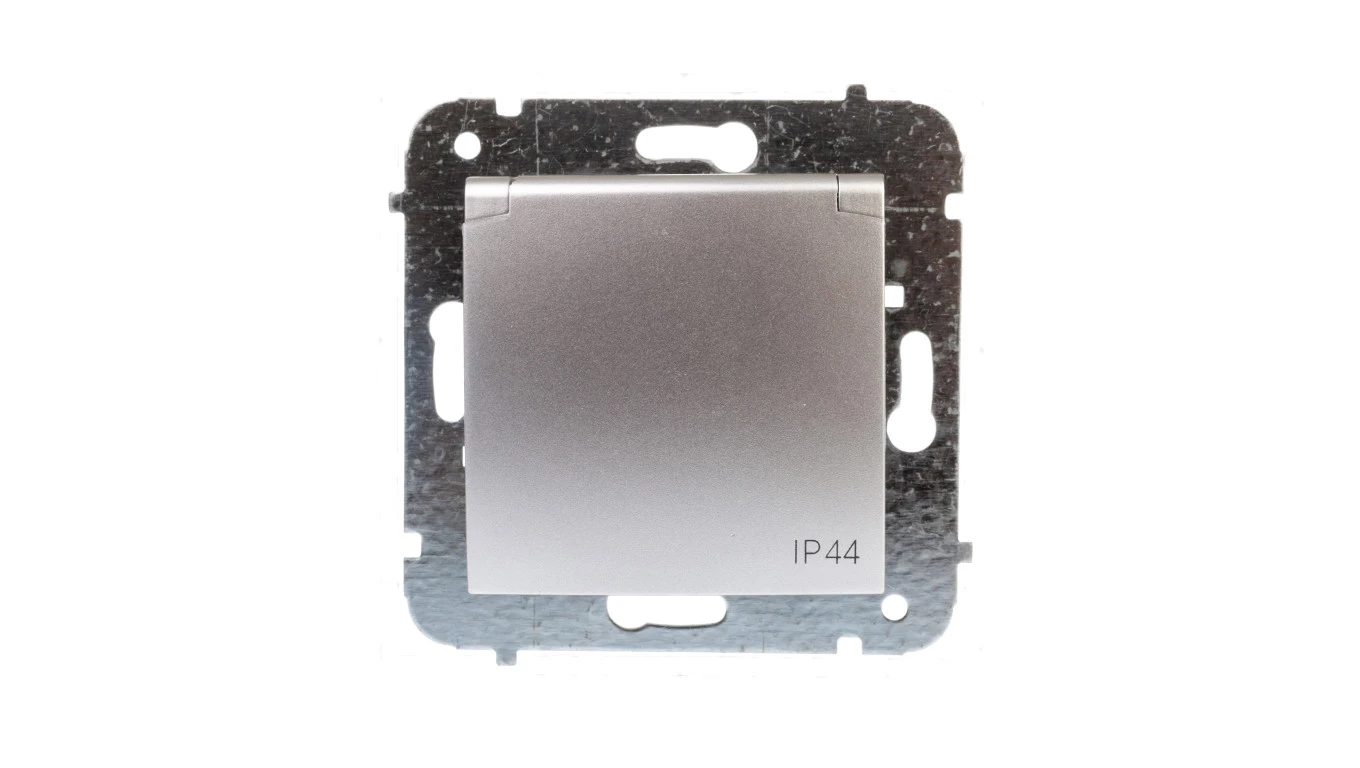 Simon Akord Gniazdo bryzgoszczelne z/u IP44 z klapką dymną aluminium metalizowane AGZ1Be/26a
