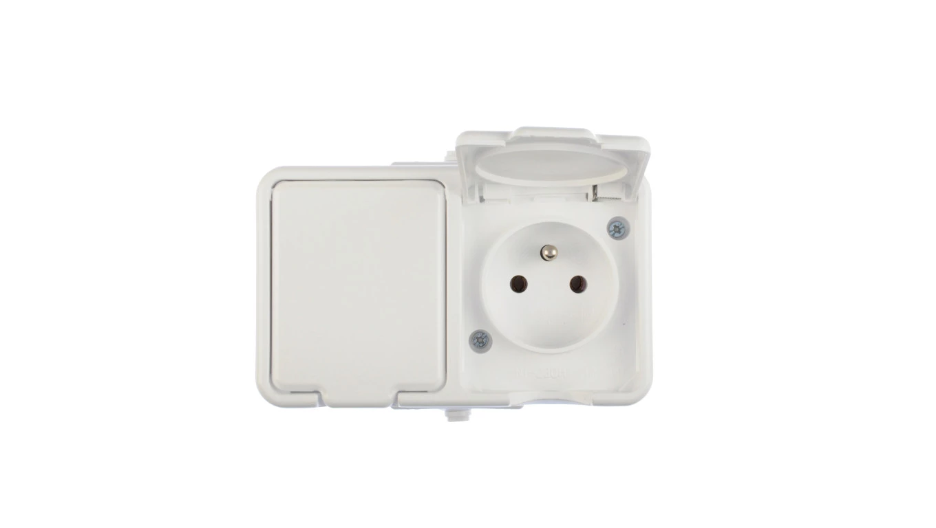 B2 Gniazdo pojedyncze n/t 2p+Z, bryzgoodp.+ Łącznik IP54 biały 00060278