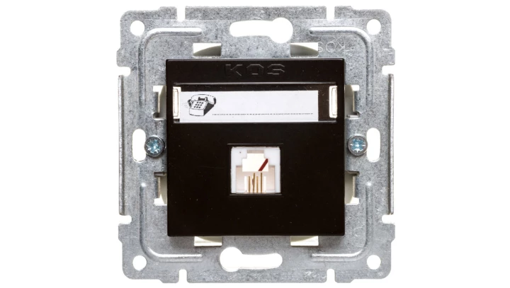 ICON Mechanizm gniazda telefonicznego pojedynczego 1xRJ11, 4-stykowy, beznarzędziowe, bez pola opisowego czarny mat 12IGTBO-1