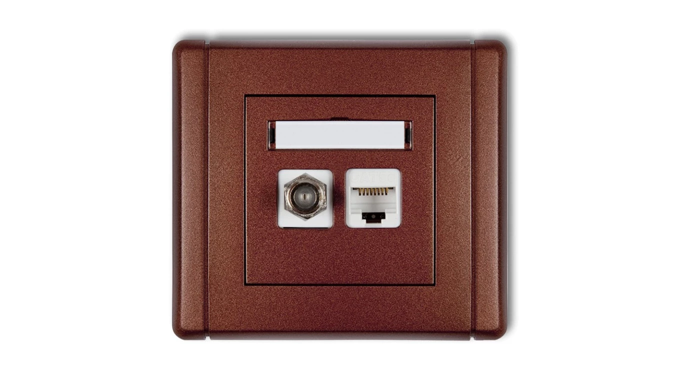 FLEXI Gniazdo antenowe pojedyncze typu F (SAT) + gniazdo komputerowe pojedyncze 1xRJ45 kat. 5e 8-stykowe brązowy metalik 9FGFK-1
