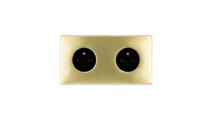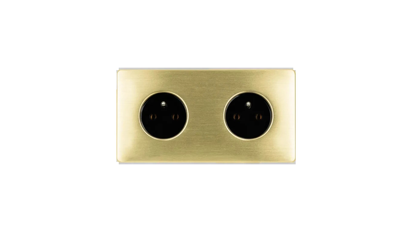 Gniazdko elektryczne czarne podwójne ramka stal szczotkowana PVD Brass GN-SNPBR02C