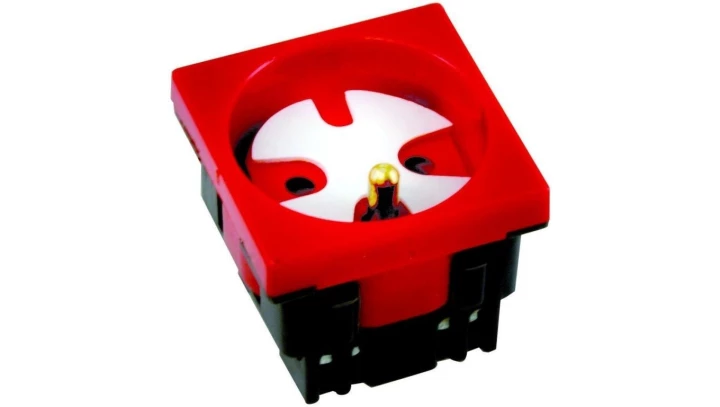 Gniazdo 230V z uziemieniem 1-krotne std 45x45, z blokadą i zwalniaczem czerwone E/GNBZ