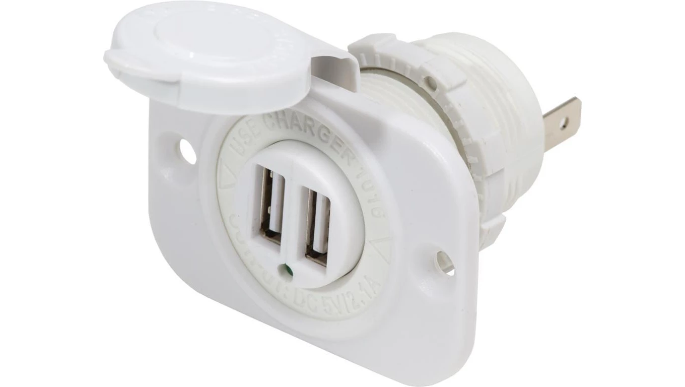 Gniazdo ładowania Blue Sea 12/24V z podwójnym portem USB 2,1 A