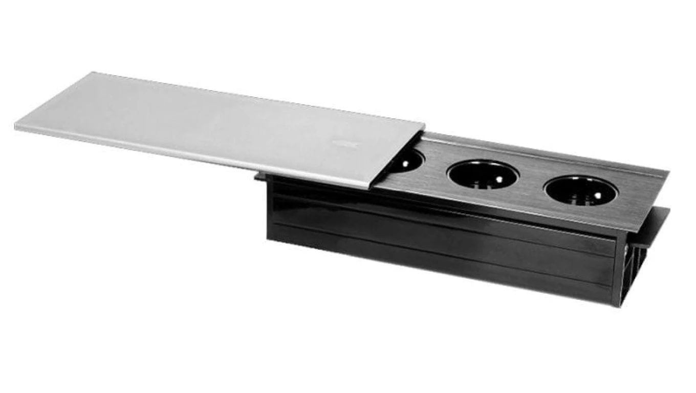 Gniazdo meblowe wpuszczane w blat 3x2P+Z z przesuwną pokrywką,OR-GM-9007/B-G