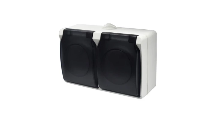 BRYZA Gniazdo hermetyczne podwójne z/u IP54 z klapką dymną białe 181437