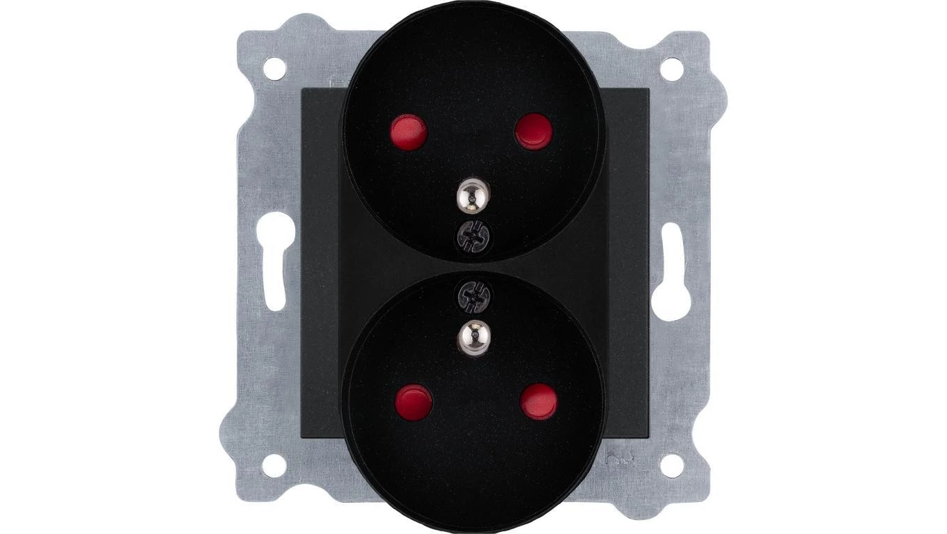 Gniazdo podwójne z uziemieniem (Typ E) i przesłonami torów prądowych 16A 250V Czarny Metalik 246/14E EXEN