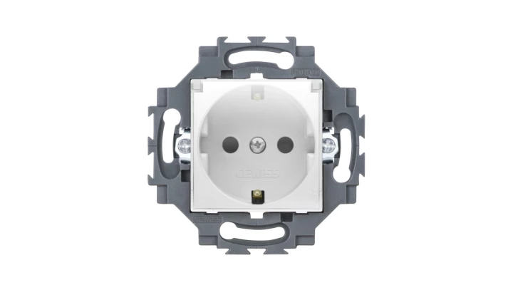 Gniazdo Schuko z klapką 2P+E 16A z przesłonami styków, z uziemieniem, zaciski śrubowe, białe, Dahlia GW35203W