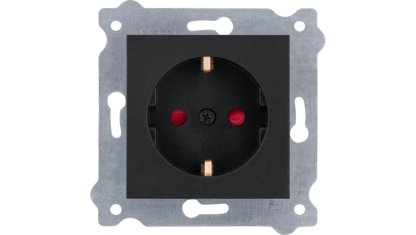 Gniazdo z uziemieniem Schuko 2P+E i przesłonami torów prądowych 250V 16A Czarny Metalik 238/14E EXEN