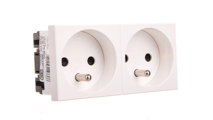 AS Gniazdo podwójne z/u z przesłonami białe GP-2GZP/00