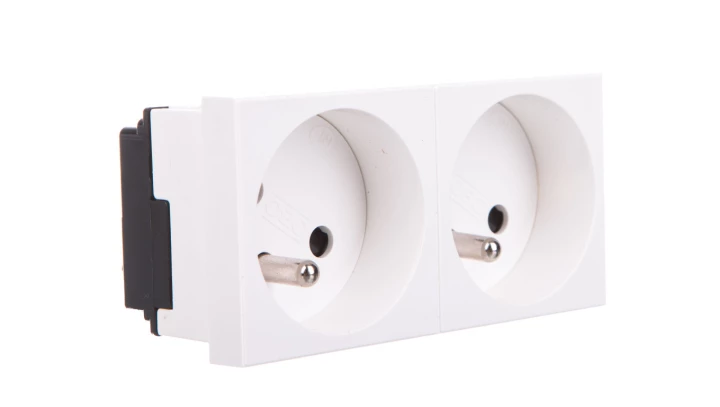 Simon 54 Gniazdo podwójne z/u 16A IP20 z przesłoną torów białe DGZ2MZ.01/11
