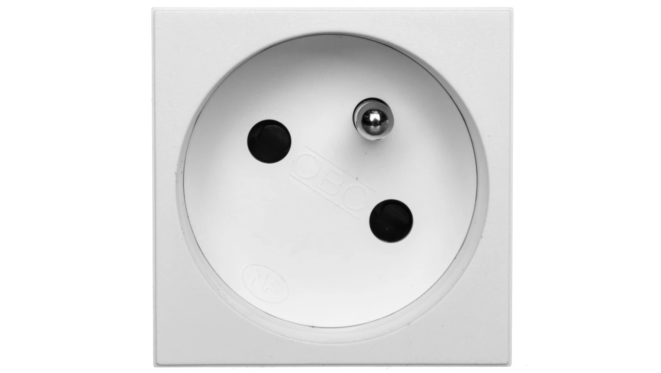 NOEN FR, gniazdo modułowe 45x45mm kątowe - 45 1x2P+Z, typ E french, 16A 250V, białe,OR-GM-9010/W/FR45
