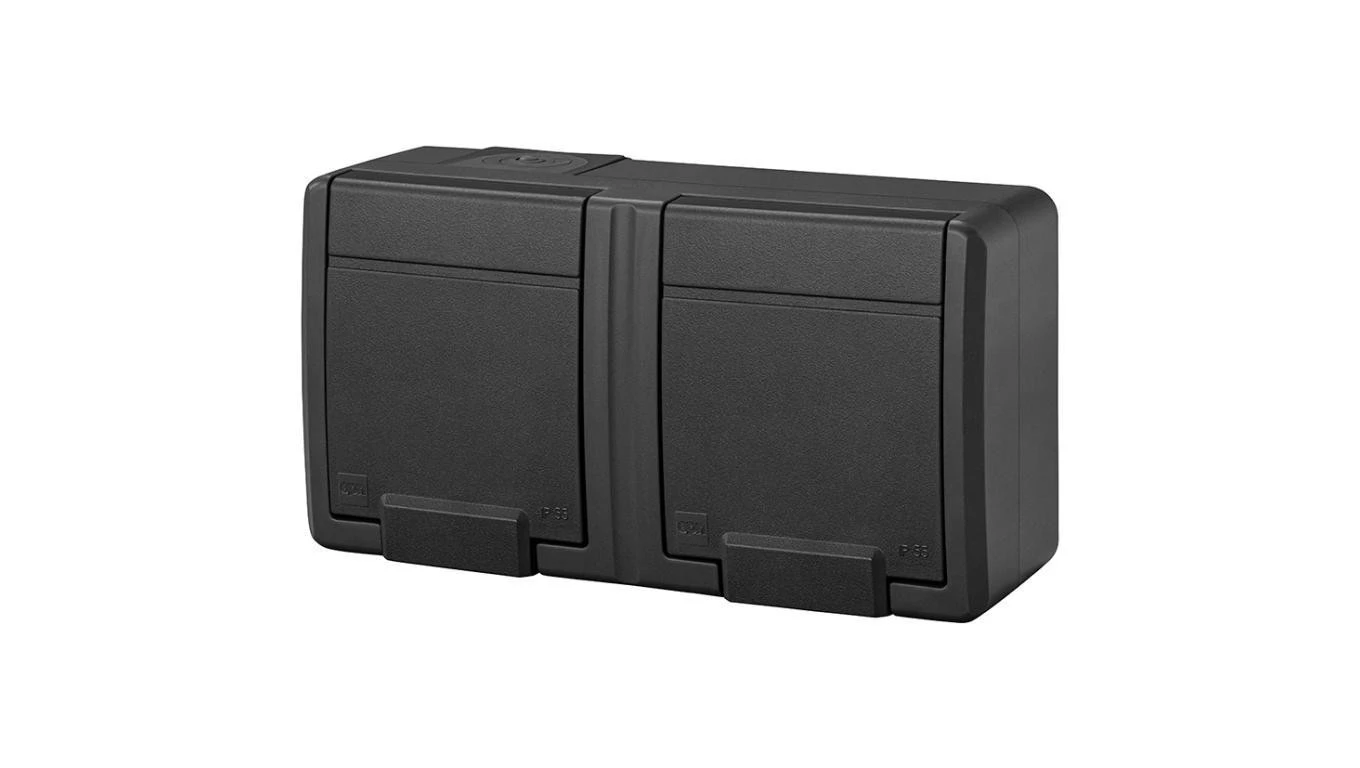 Gniazdo zasilające podwójne natynkowe hermetyczne IP55 antracytowe z klapką 2x 2P+Z 16A Aquant 2K