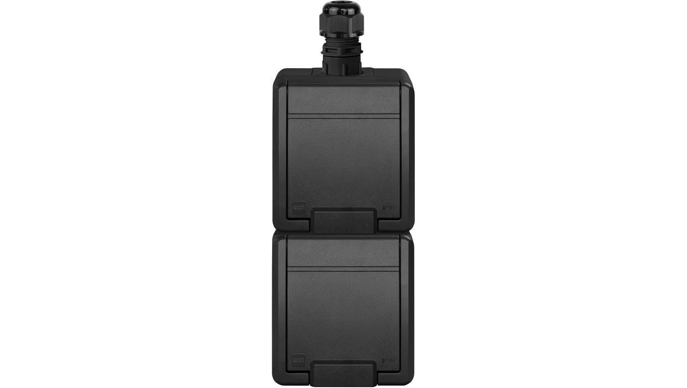 Gniazdo zasilające podwójne natynkowe hermetyczne IP65 antracytowe z klapką 2x 2P+Z z przesłonami, pionowe Aquant 2K