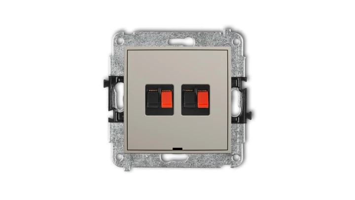 ICON Mechanizm gniazda głośnikowego poj., bez opisu (banan - czerwony i czarny, pozłacany, 4 mm2, skręcany) szary mat 27IGGBO-4