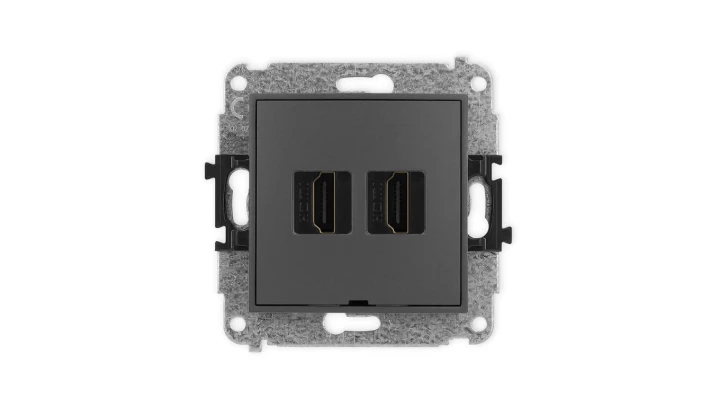 ICON Mechanizm gniazda podwójnego do ramki bez uziemienia 2x2P (bez przesłon torów prądowych) grafitowy 11IGPR-2