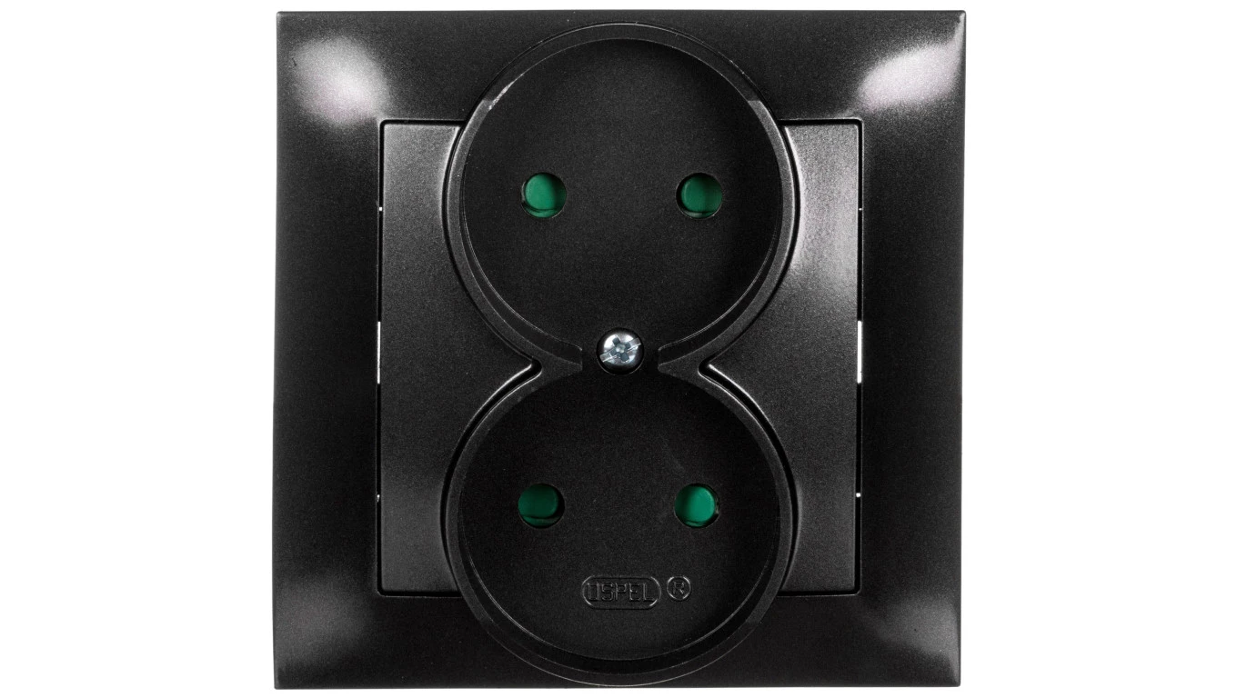 IMPRESJA Gniazdo podwójne b/u z przesłonami antracyt GP-2YP/50