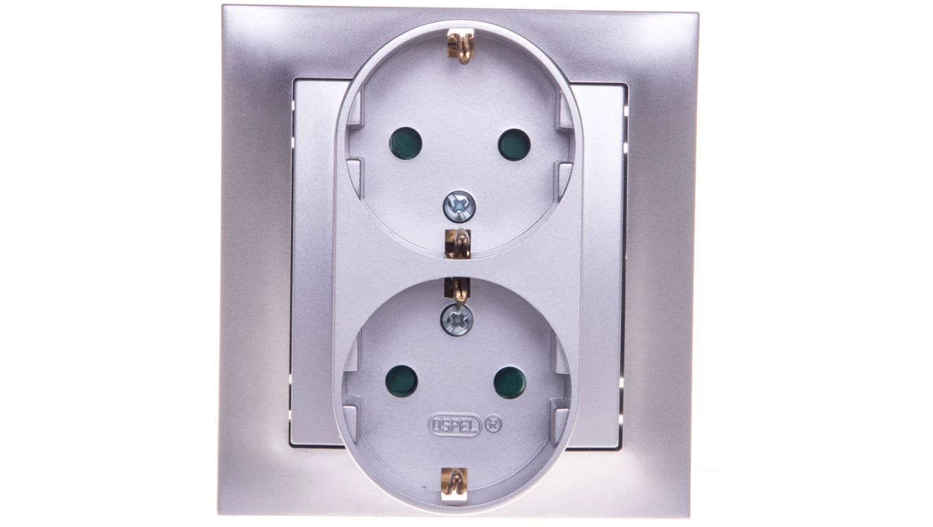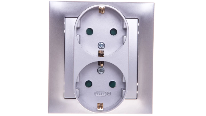 IMPRESJA Gniazdo podwójne z/u Schuko z przesłonami srebrne GP-2YSP/18