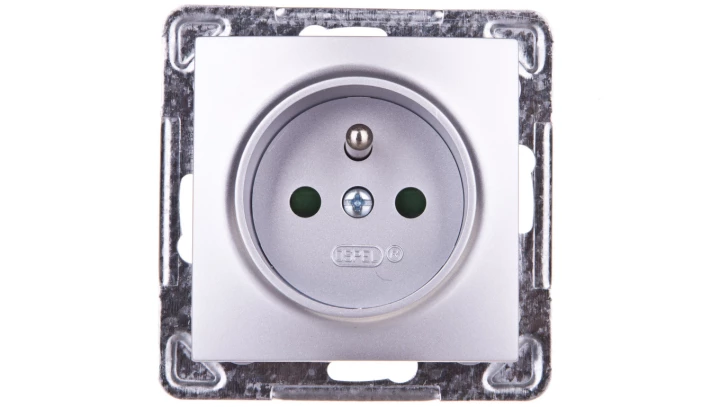 IMPRESJA Gniazdo pojedyncze z/u z przesłonami srebrne GP-1YZP/m/18
