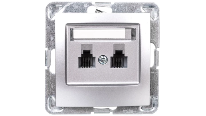 IMPRESJA Gniazdo telefoniczne podwójne RJ11 równoległe srebrne GPT-2YR/m/18