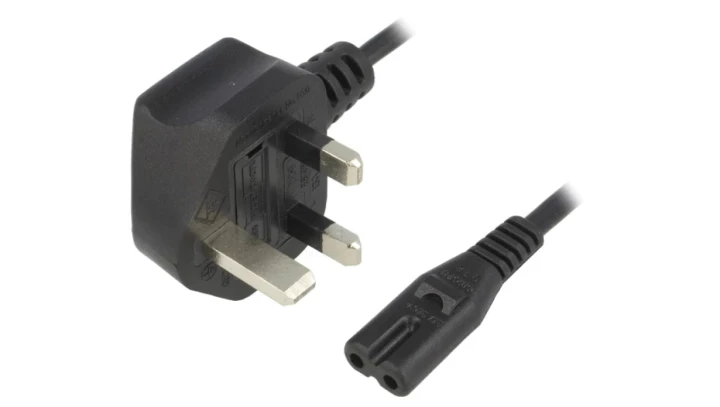 Kabel zasilający VALUE UK z płaskim złączem euro C7, 2-biegunowy, czarny, 1,95 m