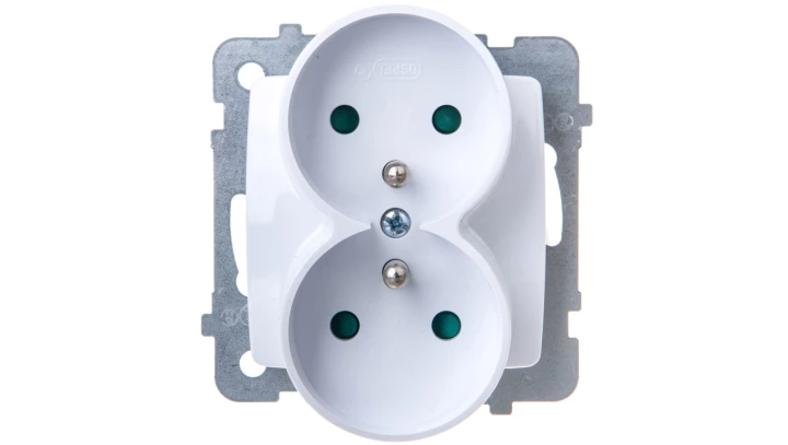 KARO Gniazdo podwójne z/u z przesłonami białe GP-2SRZP/m/00