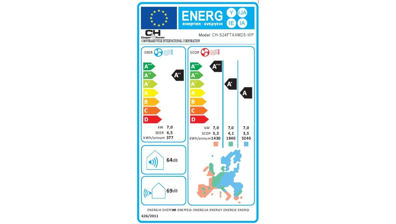 Klimatyzator ścienny CooperiHunter, Supreme Biały, CH-S24FTXAM2S-WP (komplet), 7,0 kW, 5 lat gwarancji, Grzanie i Chłodz., WiFi