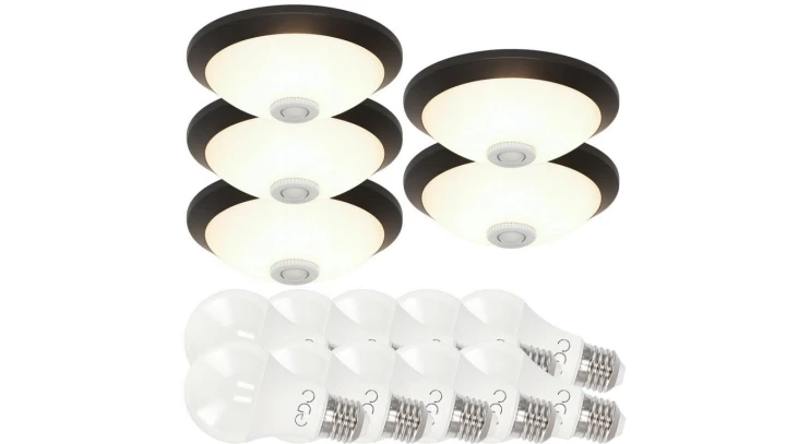 Komplet 5x Plafon z czujnikiem ruchu 360 Czarny E27 400.010.143 HOROZ + 10 x żarówka EDO777498