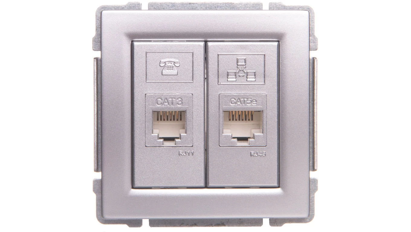 Lumina Gniazdo komputerowe podwójne RJ45 kat.6 UTP srebrne WL2162