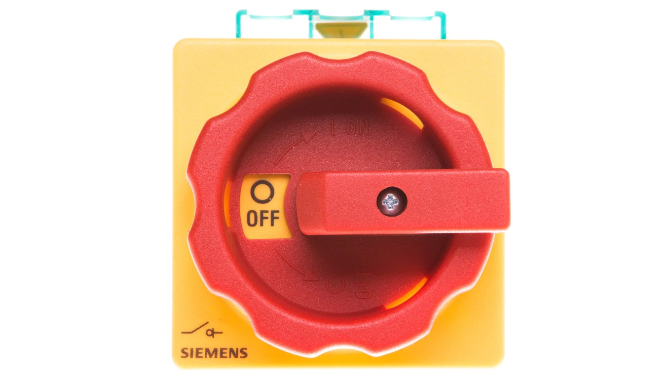 Łącznik krzywkowy 0-1 3P 32A napęd drzwiowy rozłączny żółto/czerwony IP65 3LD2213-0TK53