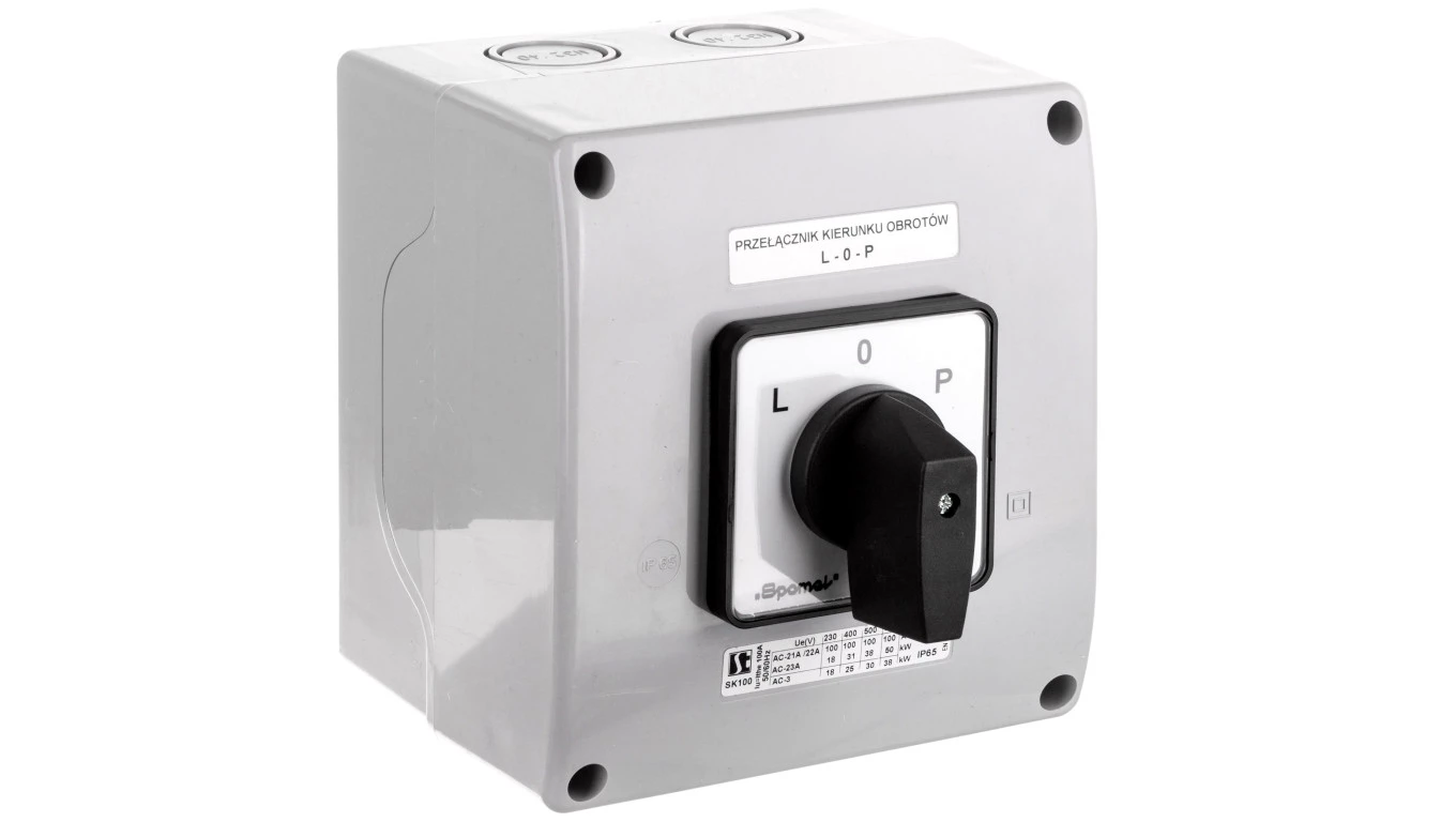 Łącznik krzywkowy 0-1 3P 40A IP65 Łuk 40-12 z płytką 924003