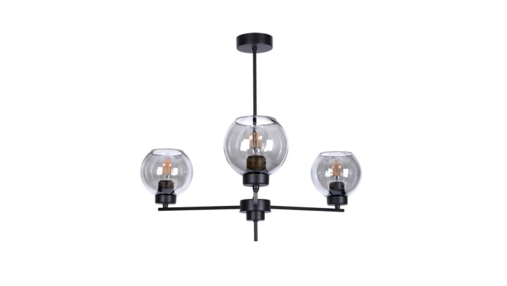 Lampa sufitowa ALDAR czarna z trzema ramionami, szklane klosze na E27 K-4851 Kaja Lighting